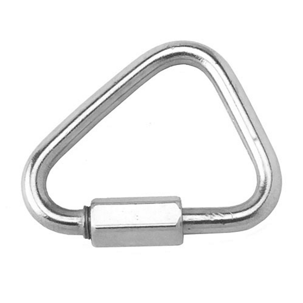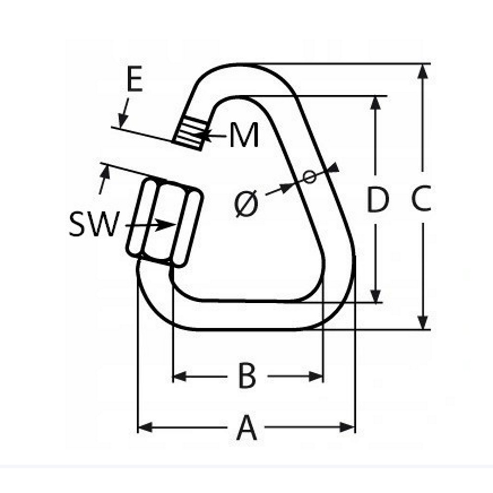 Карабин дельта Din 8489 с гайкой – это элемент крепежа, изготовленный из нержавеющей стали А4. Имеет широкую область применения. Могут использоваться в промышленном альпинизме, погрузочно-разгрузочных работах, входят в комплект обязательного оборудования спасателей и пожарных. Предназначение карабина - уменьшить возможность соскальзывания цепи, каната или троса в сторону. Резьбовая втулка прочно запирает изделие, не допуская его самопроизвольного открытия. Для открытия карабина следует вращать шестигранную гайку по часовой стрелке, а для закрытия – в обратном направлении. Затянуть муфту можно как вручную, так и с помощью ключа или другого подходящего ручного инструмента. Представленная модель изготовлена из нержавеющей стали марки А4 и может быть использована в экстремальных условиях эксплуатации. Широкий модельный ряд типоразмеров способствует применению карабинов для различных типов работ, не только в статичном соединении элементов, но и когда они пребывают в динамике: поводки для животных, фиксация ранцев и рюкзаков, страховочных тросов и т.п.