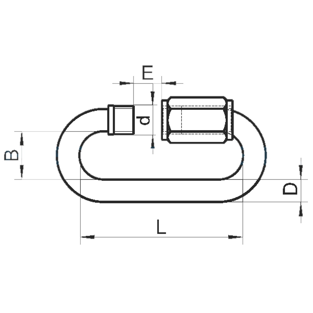 Винтовой карабин, изготовленный по артикулу 9077, предназначен для надежного, максимально быстрого соединения между собой цепей всех типов. Также они применяются для связи веревок, цепей и тросов в быту, строительстве, разгрузочно - погрузочных работ, при сборке детских качелей, закрепления такелажных, стропильных тросов. При помощи карабина винтового можно быстро, надежно соединить разорванную цепь, удлинить целую, используя его как звено, создать конструкцию строительного механизма. Такое изделие имеет не меньшую прочность, чем его аналог с пружинной защелкой, но используется в тех случаях, когда не требуется частое снятие. Это отличие связано с большим временем, которое требуется на размыкание и замыкание рассматриваемого карабина. Карабин изготовлен из нержавеющей стали класса A4, поставляемой в форме круглого прута диаметра 4 – 12 мм. С этим размером связан внутренний – радиус закругления и длина изделия, от которых зависит допустимое сечение троса и правильный выбор карабина, зависящий от его нагрузки. У устройства простая конструкция. Оно имеет вытянутую овальную форму с разрезом, который замыкается закручиванием шестигранной гайки с увеличенной высотой, называемой еще соединительной муфтой. Эта деталь в состоянии обеспечить ускоренное соединение либо разъединение цепи или троса.