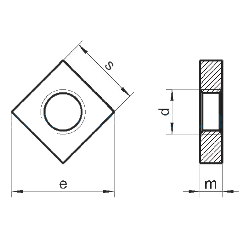 Квадратная гайка Din 562 - плоский четырёхгранный метиз с внутренней резьбой.