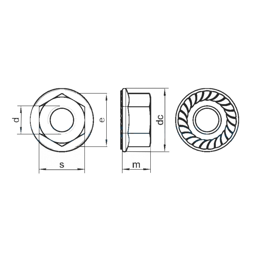 Шестигранная гайка с фланцем стандарта Din 6923 изготавливается из нержавеющей стали марки А2 или А4.