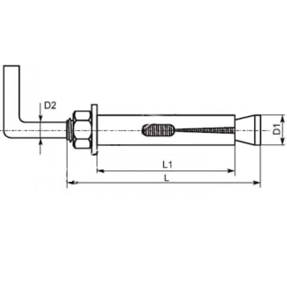 Анкер с Г-образным крюком представляет собой шпильку с накручиваемой гайкой и распорной частью, изогнутую в виде буквы "Г", так называемого крюка и распираемую стальную гильзу. Шпилька изогнута точно под 90 градусов. Распорная часть имеет внутреннюю резьбу и изготовлена в виде конуса. Рубашка имеет рассечения, что необходимо для лучшего расклинивания. При закручивании гайки происходит смещение шпильки с конусообразным элементом относительно втулки, вызывая ее распор, приводящий к анкеровке в материале основания. Прочность анкерного соединения прямо пропорциональна прочности материала основания.