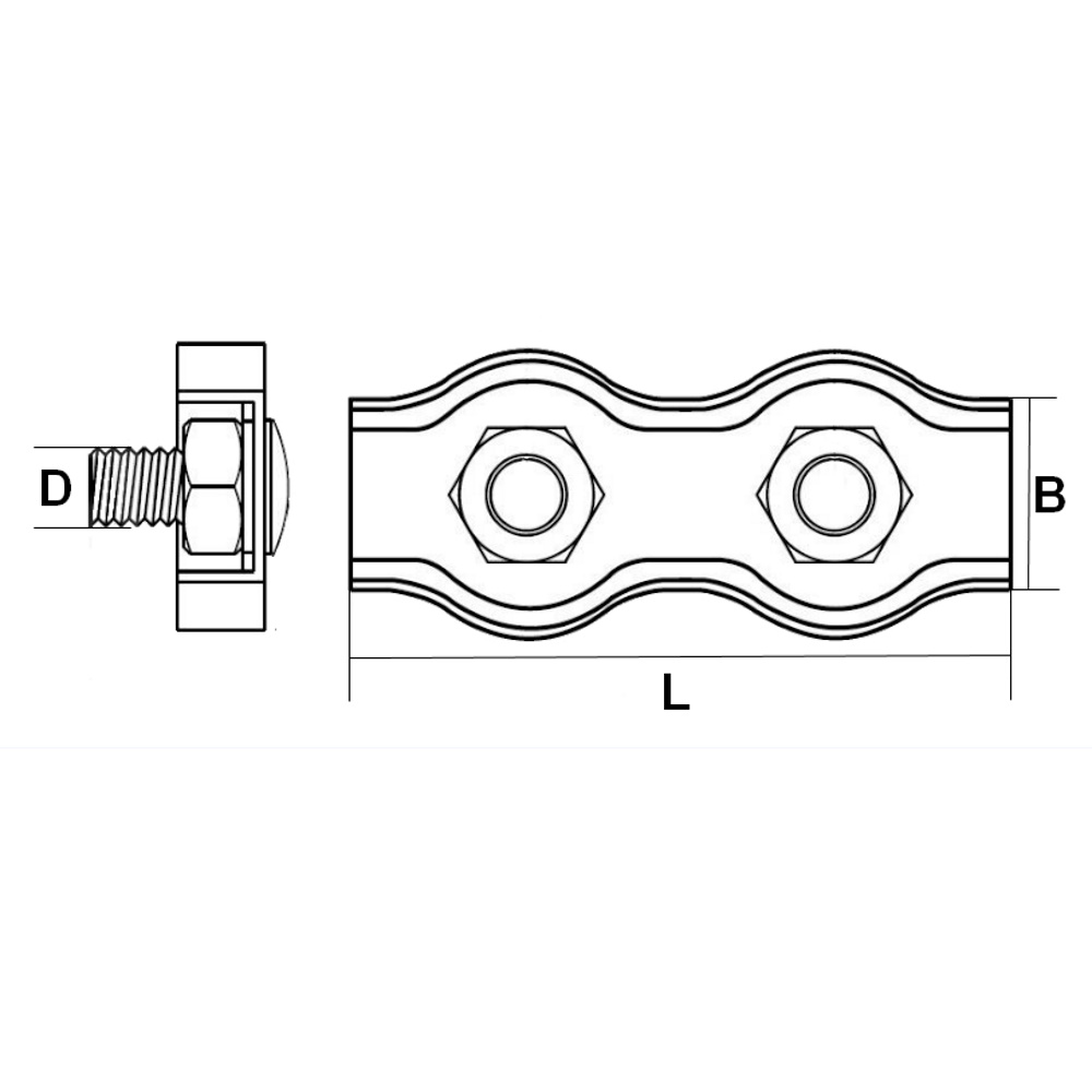 К основной пластине изделия приварены две шпильки, по форме зажима пролегает внутреннее ложе. Именно в него вкладывается закрепляемый канат, закрывается второй пластиной и затягивается двумя шестигранными гайками. Затягивать гайки следует поочередно, чтобы не допустить возможного перекоса крепления. Соединение дуплексом получается надежным, быстрым и прочным.