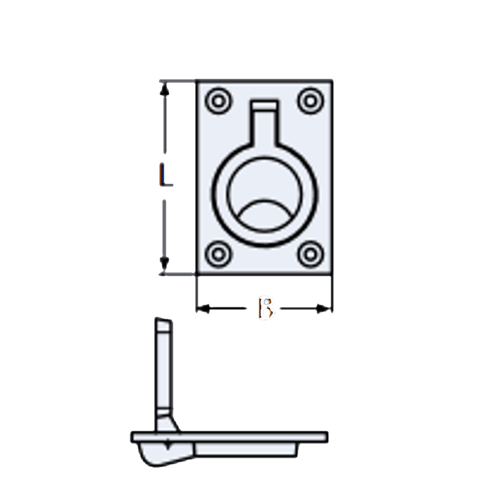 Ручка-кольцо подъемное, с потайным прямоугольным основанием.