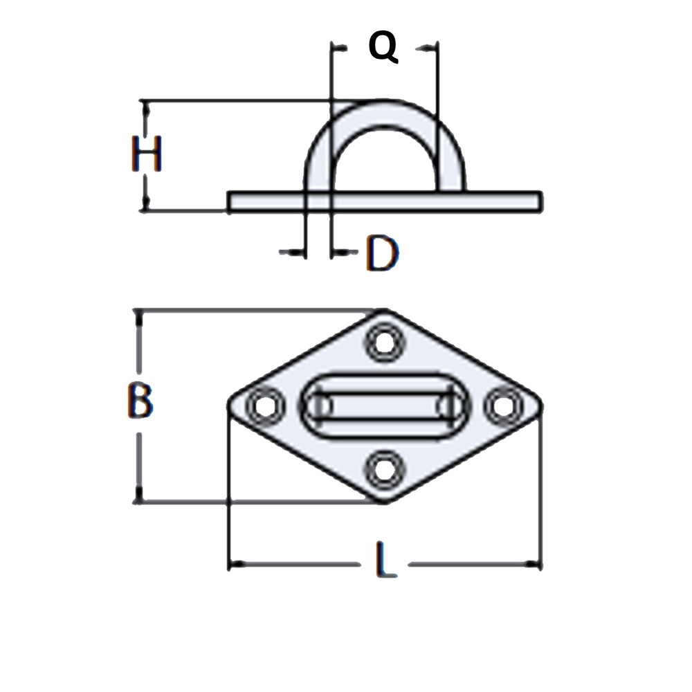 Обух такелажный на ромбовидной основе арт. 8264 из нержавеющей стали А4 широко применяется на производстве, в строительстве и при проведении всевозможных такелажных работ.