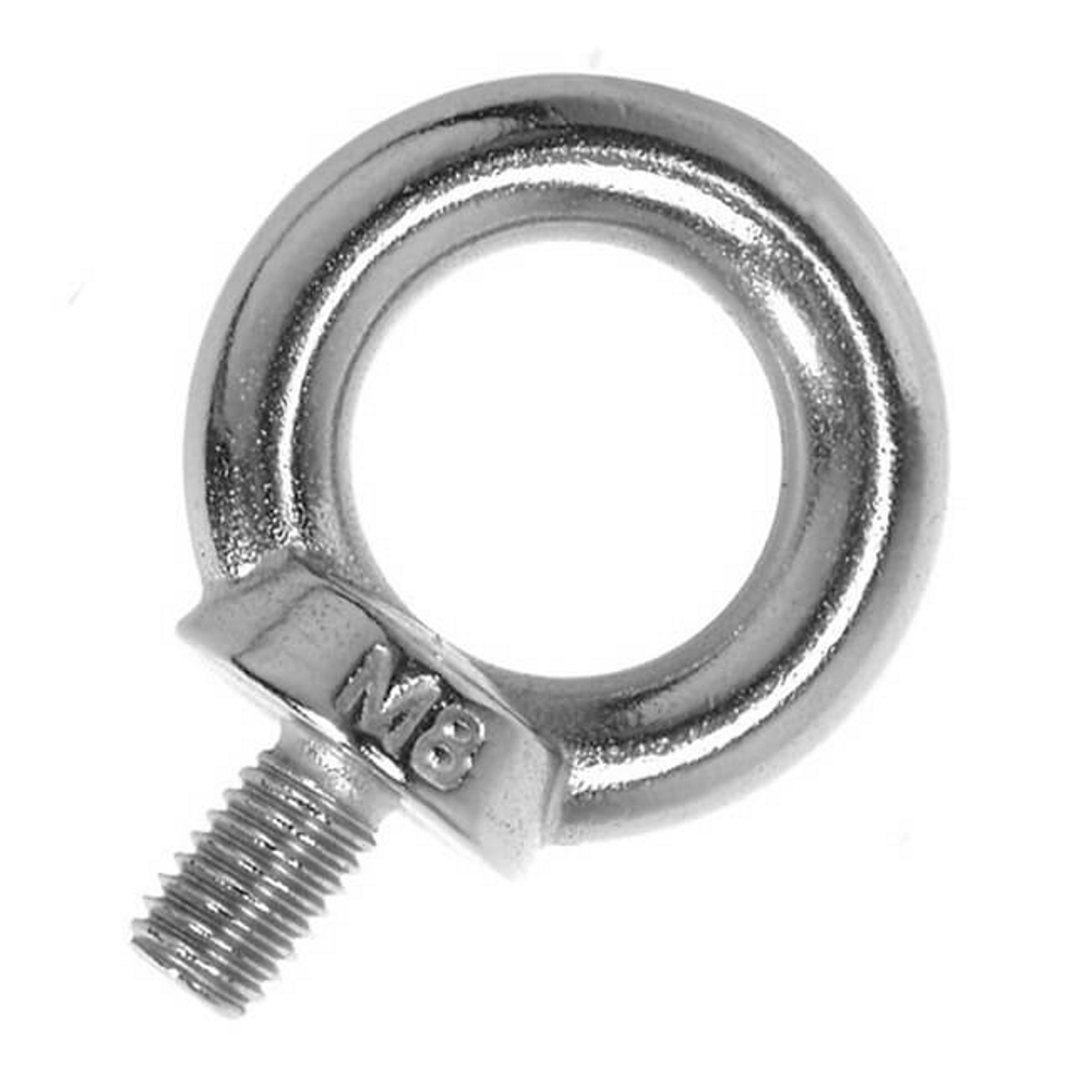 Нержавеющий рым - болт арт. 580 А2 и А4 предназначен для закрепления и фиксации элементов такелажных и подъёмных устройств, работающих в агрессивных средах. Метиз состоит из кольца и стержня с полной метрической резьбой.