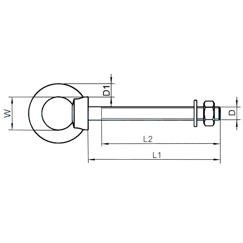 Рым-болт длинный с гайкой и шайбой арт.8267, из нержавеющей стали А4.