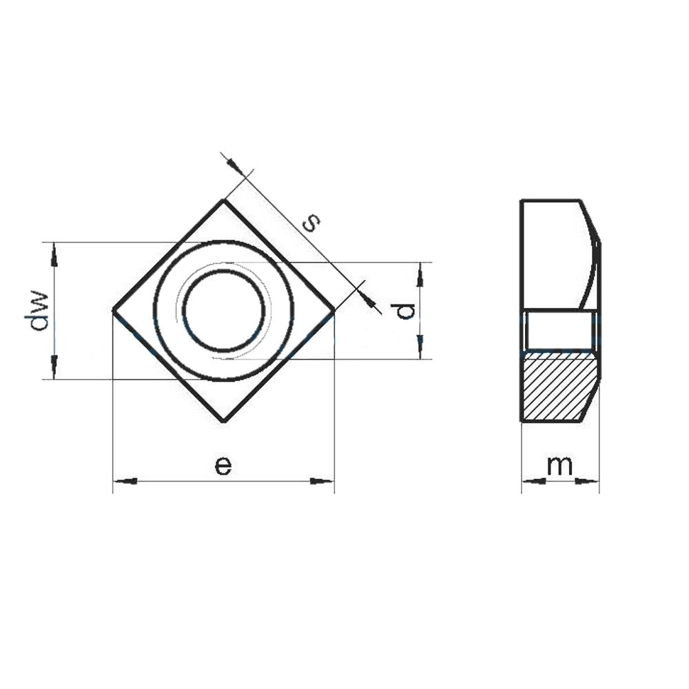 Нержавеющая квадратная гайка Din 557 А2 предназначена для создания резьбового крепления с коррозионностойкими резьбовыми элементами: шпильками, болтами или винтами.