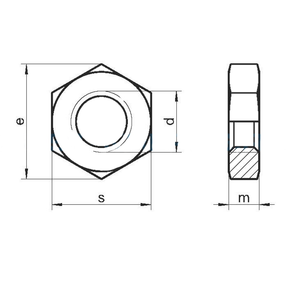 Шестигранные гайки низкие с фаской сортамента Din 439 имеют мелкую метрическую резьбу от М8 до МЗЗ.